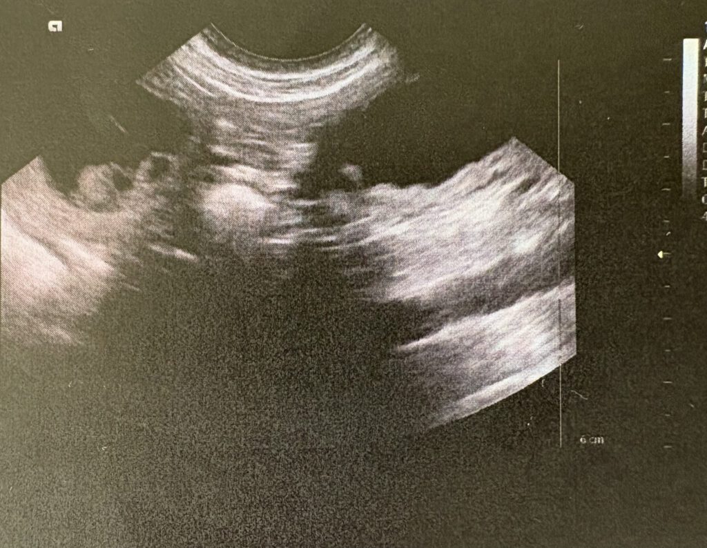 Heute wurden bei Lucy vom Tierarzt per Ultraschall acht Welpen gesehen.